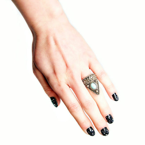 Vanessa Mooney The Realms ring features a gold triangle pendant with antique-like etchings. Also available in Silver!
